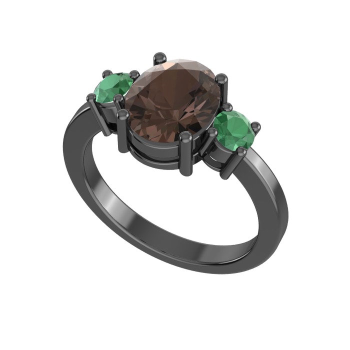 Dumanlı kuvars ve kök zümrüt 925 ayar siyah rodyum kaplama gümüş yüzük