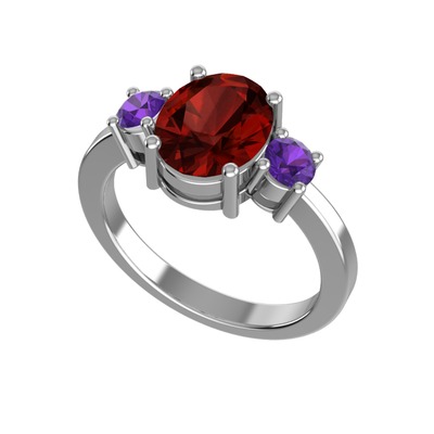 Garnet ve ametist 14 ayar beyaz altın yüzük