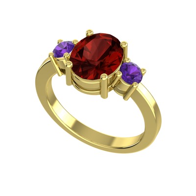 Garnet ve ametist 925 ayar altın kaplama gümüş yüzük