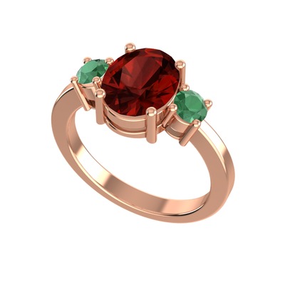 Garnet ve kök zümrüt 14 ayar rose altın yüzük