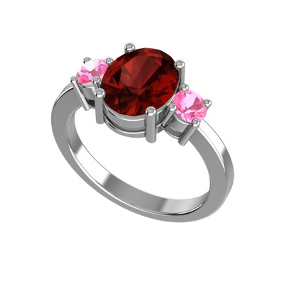 Garnet ve pembe kuvars 8 ayar beyaz altın yüzük