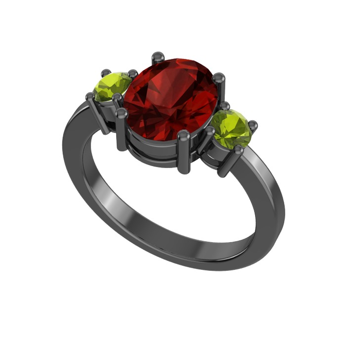 Garnet ve peridot 925 ayar siyah rodyum kaplama gümüş yüzük