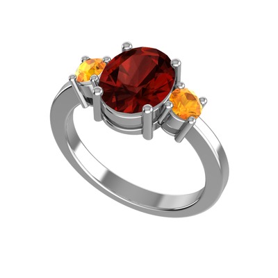 Garnet ve sitrin 8 ayar beyaz altın yüzük