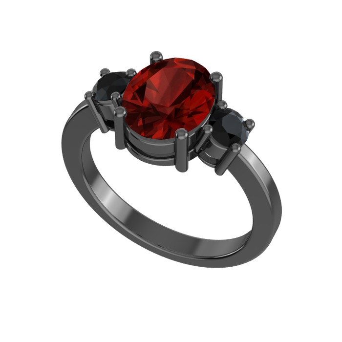 Garnet ve siyah zirkon 925 ayar siyah rodyum kaplama gümüş yüzük