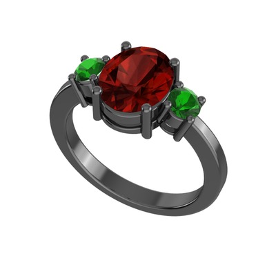 Garnet ve yeşil kuvars 925 ayar siyah rodyum kaplama gümüş yüzük
