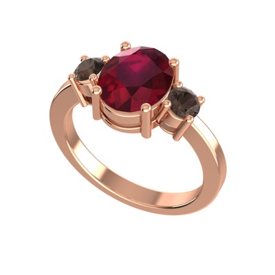Kök yakut ve dumanlı kuvars 8 ayar rose altın yüzük