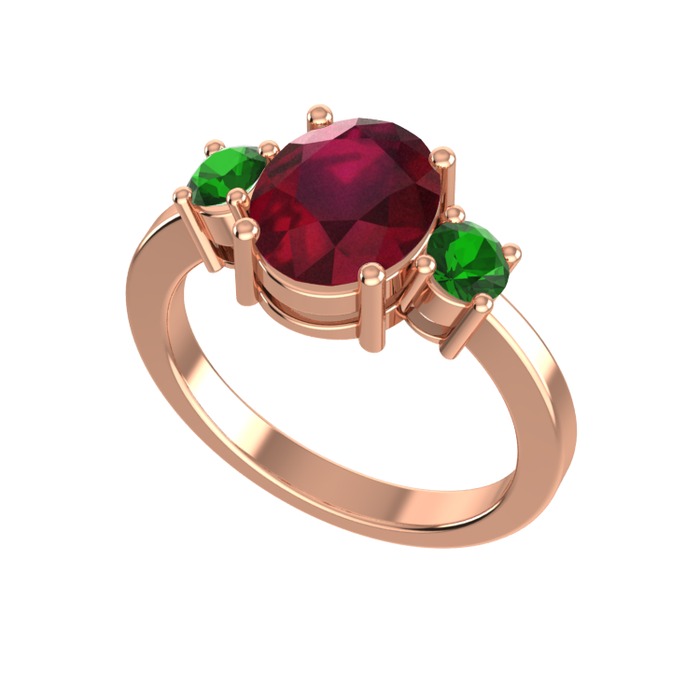 Kök yakut ve yeşil kuvars 18 ayar rose altın yüzük