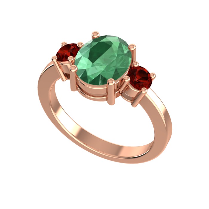 Kök zümrüt ve garnet 925 ayar rose altın kaplama gümüş yüzük