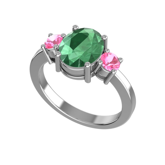 Kök zümrüt ve pembe kuvars 8 ayar beyaz altın yüzük