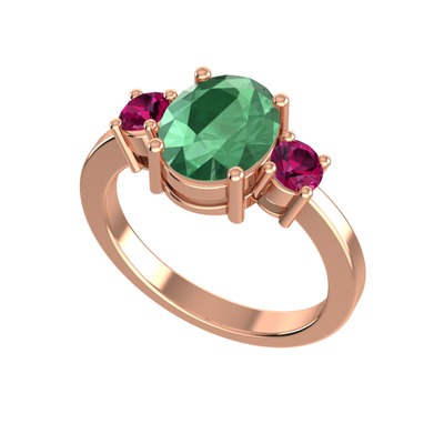 Kök zümrüt ve rodolit garnet 18 ayar rose altın yüzük