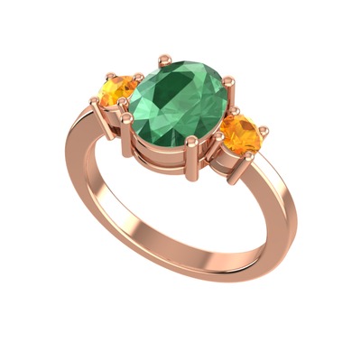 Kök zümrüt ve sitrin 8 ayar rose altın yüzük