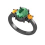 Kök zümrüt ve sitrin 925 ayar siyah rodyum kaplama gümüş yüzük