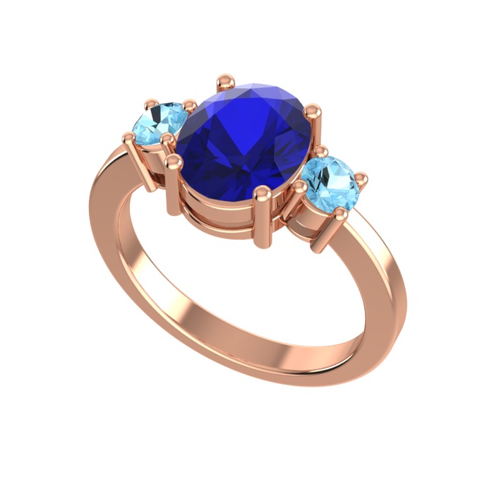 Lab safir ve akuamarin 14 ayar rose altın yüzük