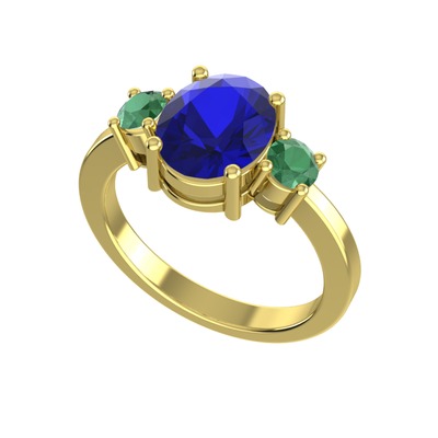 Lab safir ve kök zümrüt 925 ayar altın kaplama gümüş yüzük