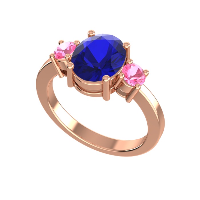Lab safir ve pembe kuvars 14 ayar rose altın yüzük