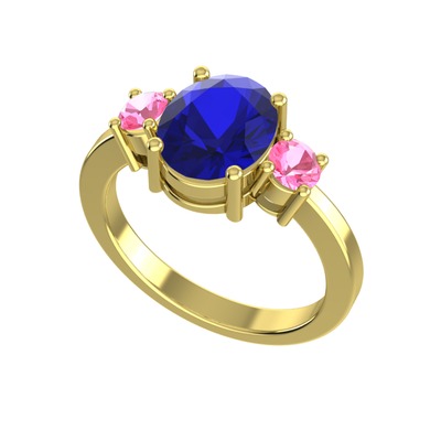 Lab safir ve pembe kuvars 18 ayar altın yüzük