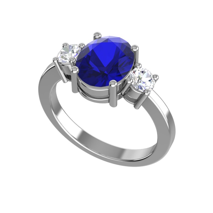 Lab safir ve pırlanta 14 ayar beyaz altın yüzük (0.48 karat)