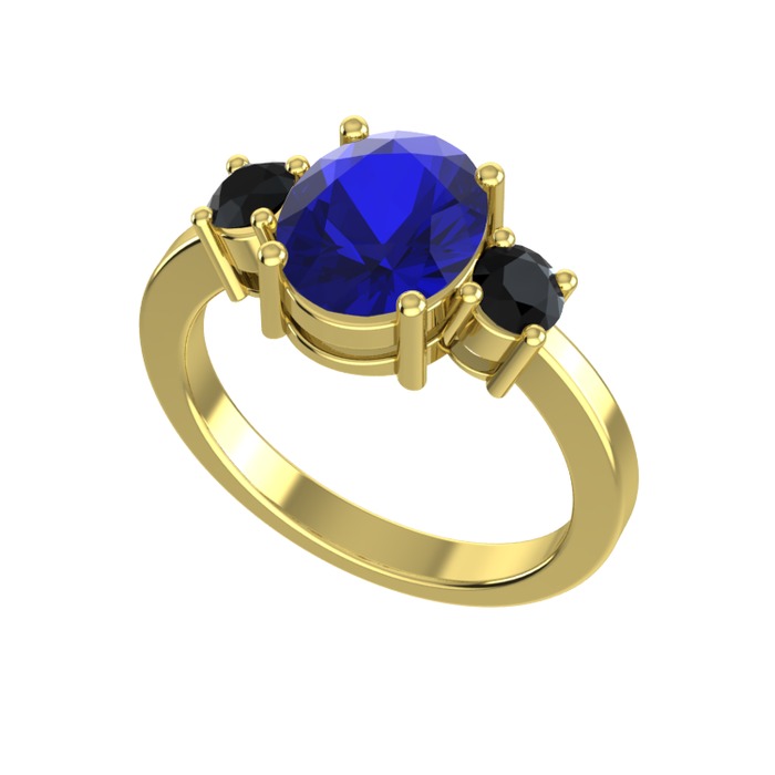 Lab safir ve siyah zirkon 18 ayar altın yüzük