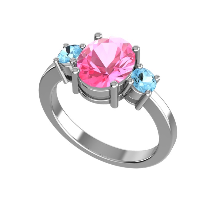 Pembe kuvars ve akuamarin 14 ayar beyaz altın yüzük