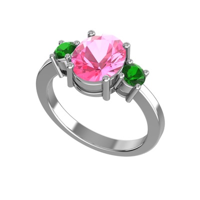 Pembe kuvars ve yeşil kuvars 14 ayar beyaz altın yüzük