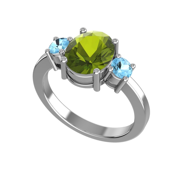 Peridot ve akuamarin 925 ayar gümüş yüzük