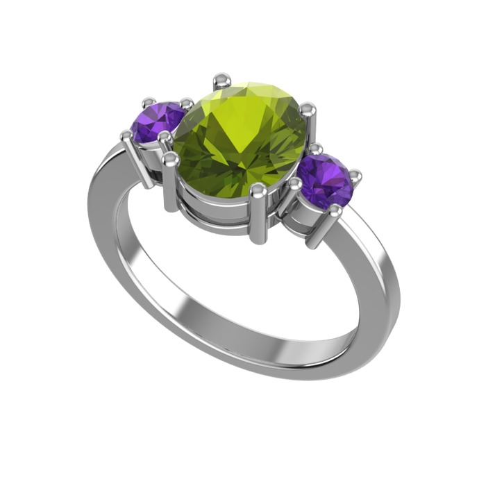 Peridot ve ametist 14 ayar beyaz altın yüzük