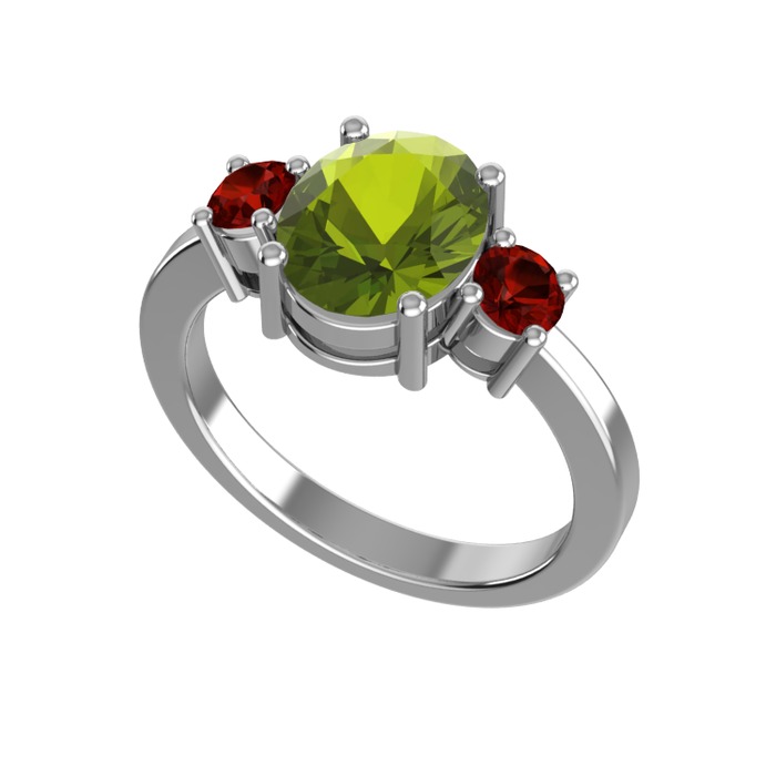 Peridot ve garnet 14 ayar beyaz altın yüzük