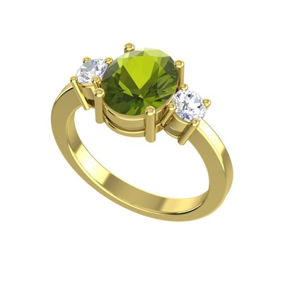 Peridot ve pırlanta 14 ayar altın yüzük (0.48 karat)