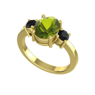 Peridot ve siyah zirkon 8 ayar altın yüzük