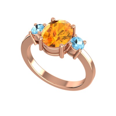 Sitrin ve akuamarin 925 ayar rose altın kaplama gümüş yüzük