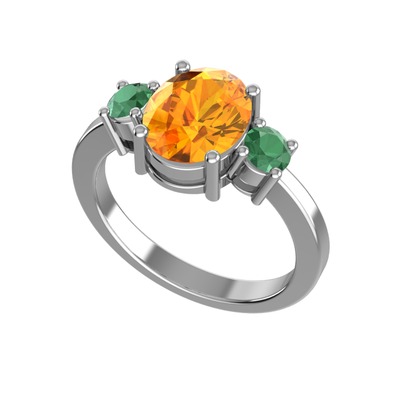 Sitrin ve kök zümrüt 925 ayar gümüş yüzük