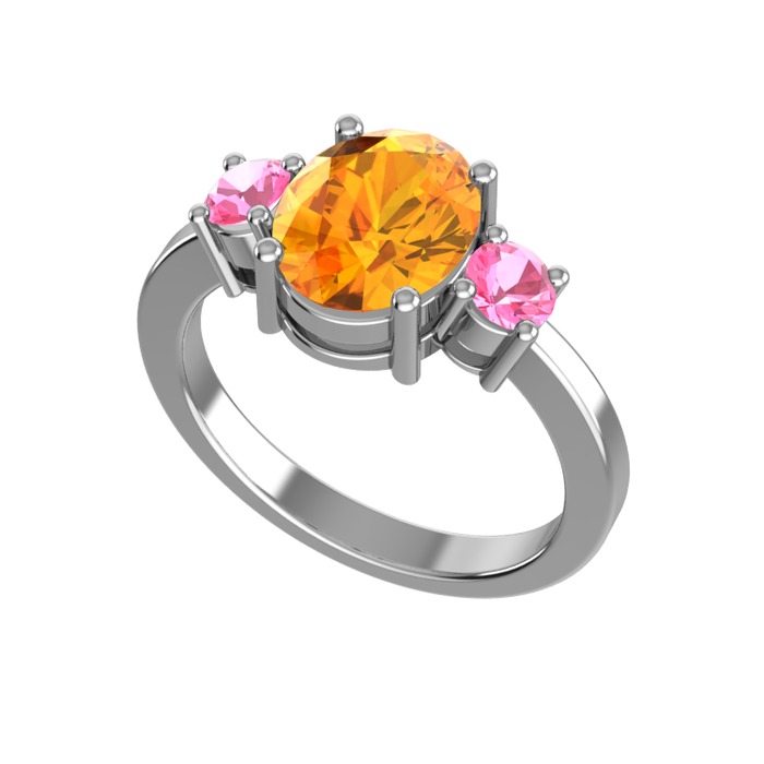 Sitrin ve pembe kuvars 925 ayar gümüş yüzük
