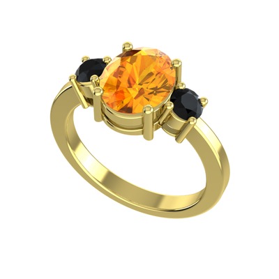 Sitrin ve siyah zirkon 8 ayar altın yüzük