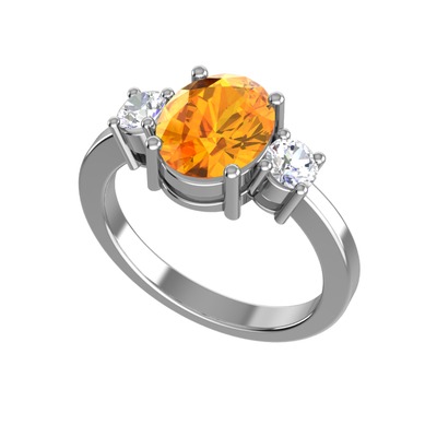 Sitrin ve swarovski 8 ayar beyaz altın yüzük