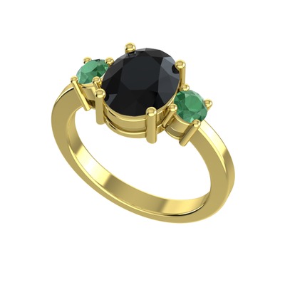 Siyah zirkon ve kök zümrüt 14 ayar altın yüzük