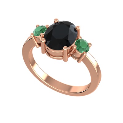 Siyah zirkon ve kök zümrüt 8 ayar rose altın yüzük