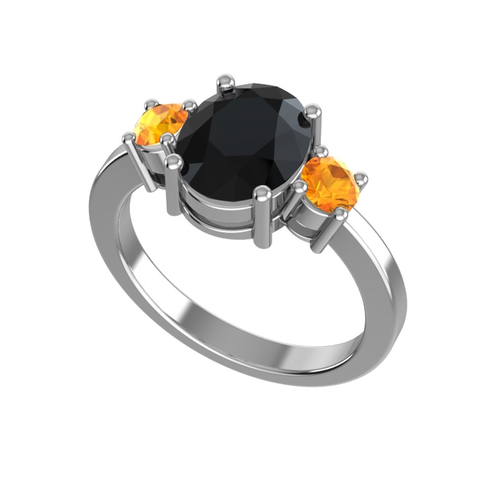 Siyah zirkon ve sitrin 18 ayar beyaz altın yüzük
