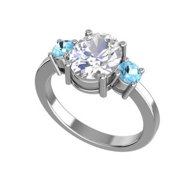Swarovski ve akuamarin 18 ayar beyaz altın yüzük