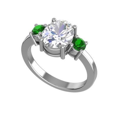 Swarovski ve yeşil kuvars 14 ayar beyaz altın yüzük