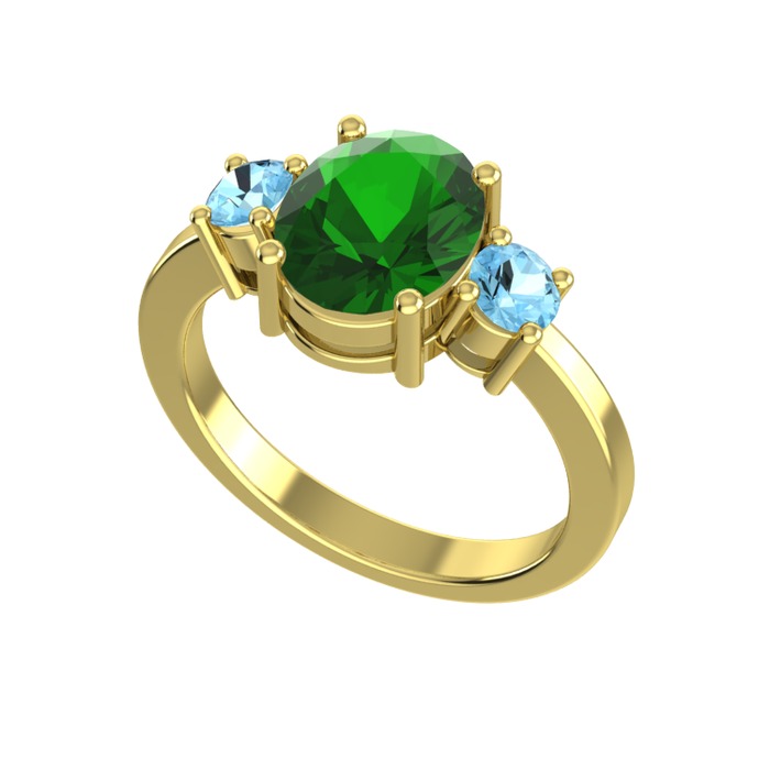 Yeşil kuvars ve akuamarin 8 ayar altın yüzük