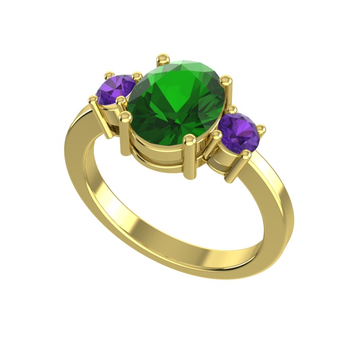 Yeşil kuvars ve ametist 18 ayar altın yüzük