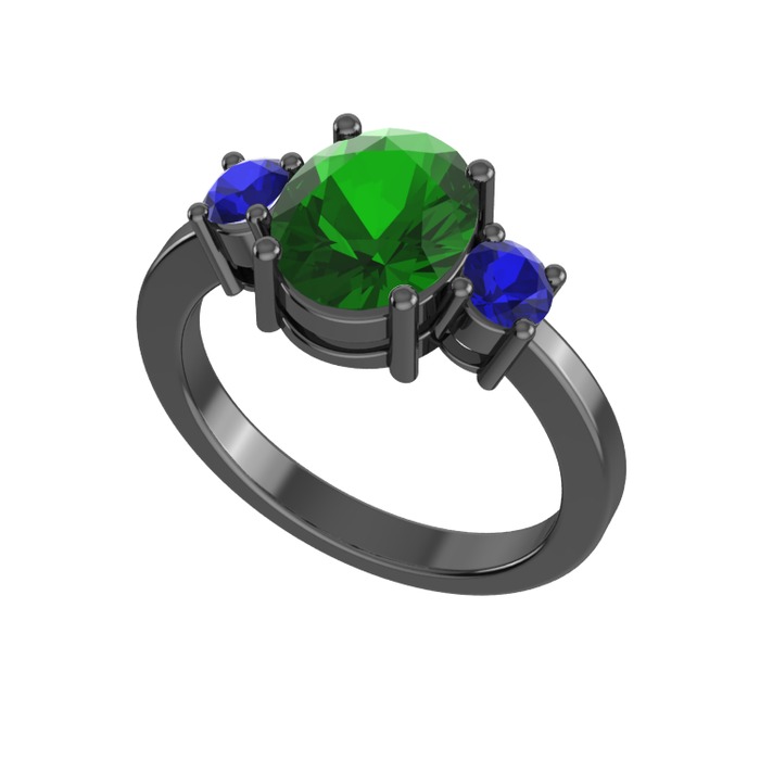 Yeşil kuvars ve lab safir 925 ayar siyah rodyum kaplama gümüş yüzük