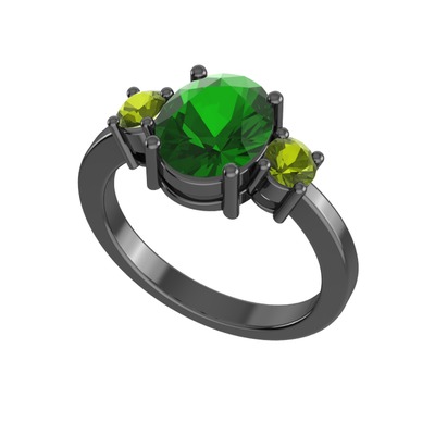 Yeşil kuvars ve peridot 925 ayar siyah rodyum kaplama gümüş yüzük