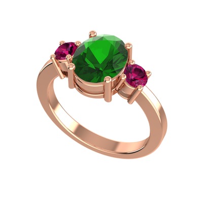 Yeşil kuvars ve rodolit garnet 925 ayar rose altın kaplama gümüş yüzük