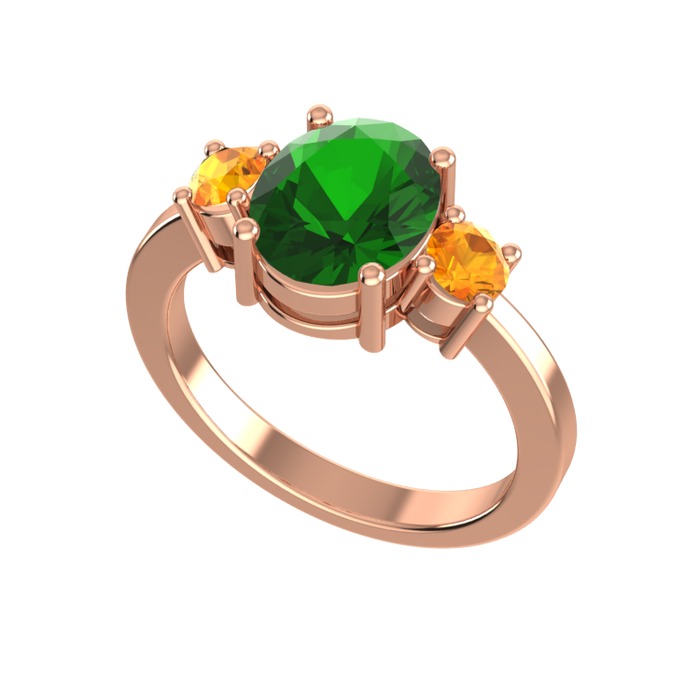 Yeşil kuvars ve sitrin 8 ayar rose altın yüzük