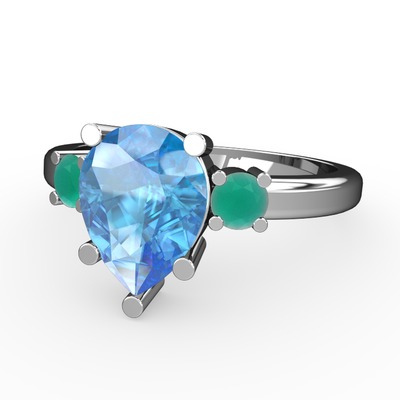 Akuamarin ve kök zümrüt 14 ayar beyaz altın yüzük