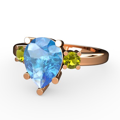 Akuamarin ve peridot 14 ayar rose altın yüzük