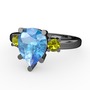 Akuamarin ve peridot 925 ayar siyah rodyum kaplama gümüş yüzük