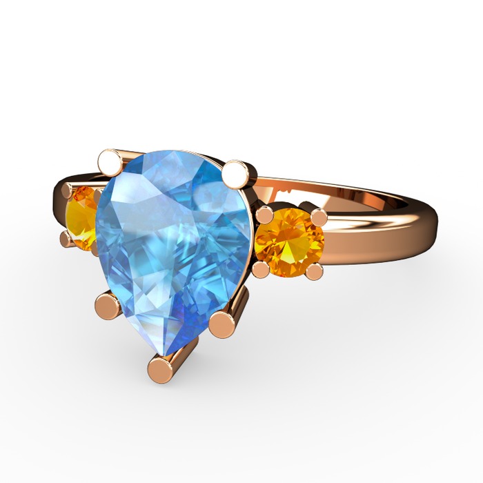 Akuamarin ve sitrin 14 ayar rose altın yüzük