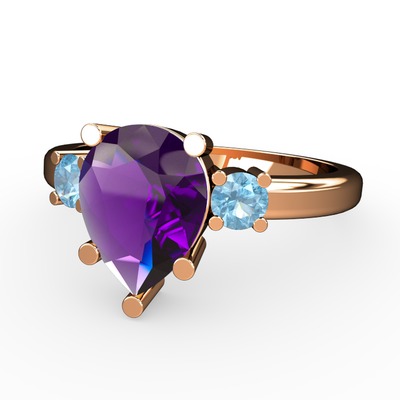 Ametist ve akuamarin 14 ayar rose altın yüzük